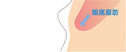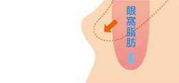 眼窩脂肪を前方ではなく下方に向けるように構造を変化させます。脂肪は下の骨に固定されるので、これ以上下がりません。