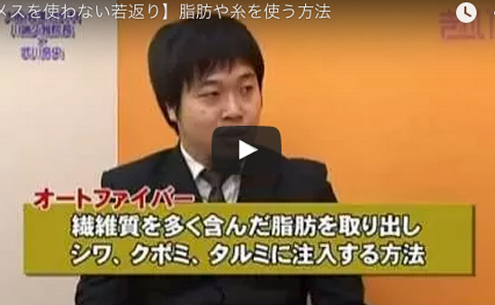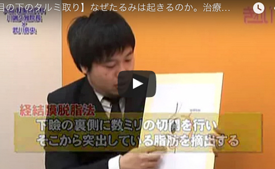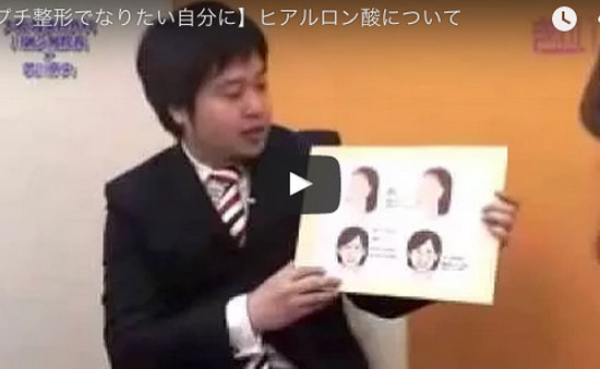 【再生医療】2017年1月23日に、読売テレビ「かんさい情報ネット TEN.~ひざ関節痛に新たな治療法~」で放送されました。 【医療痩身】2015年11月15日にBS-TBS 美容口コミ広場TVで放送されました。 【目の下のたるみ取り】2011年8月19日にサンテレビで放送されました。 【メスを使わない若返り】2011年8月12日にサンテレビで放送されました。 【なりたい自分に】2011年7月15日にサンテレビで放送されました。 【脂肪吸引】2011年7月8日にサンテレビで放送されました。